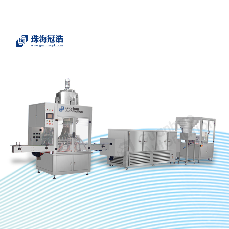 由6頭灌裝機(jī)、5通道冷凍機(jī)、卡盤式外蓋旋蓋機(jī)、三型電磁感應(yīng)鋁箔封口機(jī)、PET盒半自動鋁箔封切機(jī)組成,生產(chǎn)線各種機(jī)械參數(shù)可根據(jù)客戶需求訂做。
