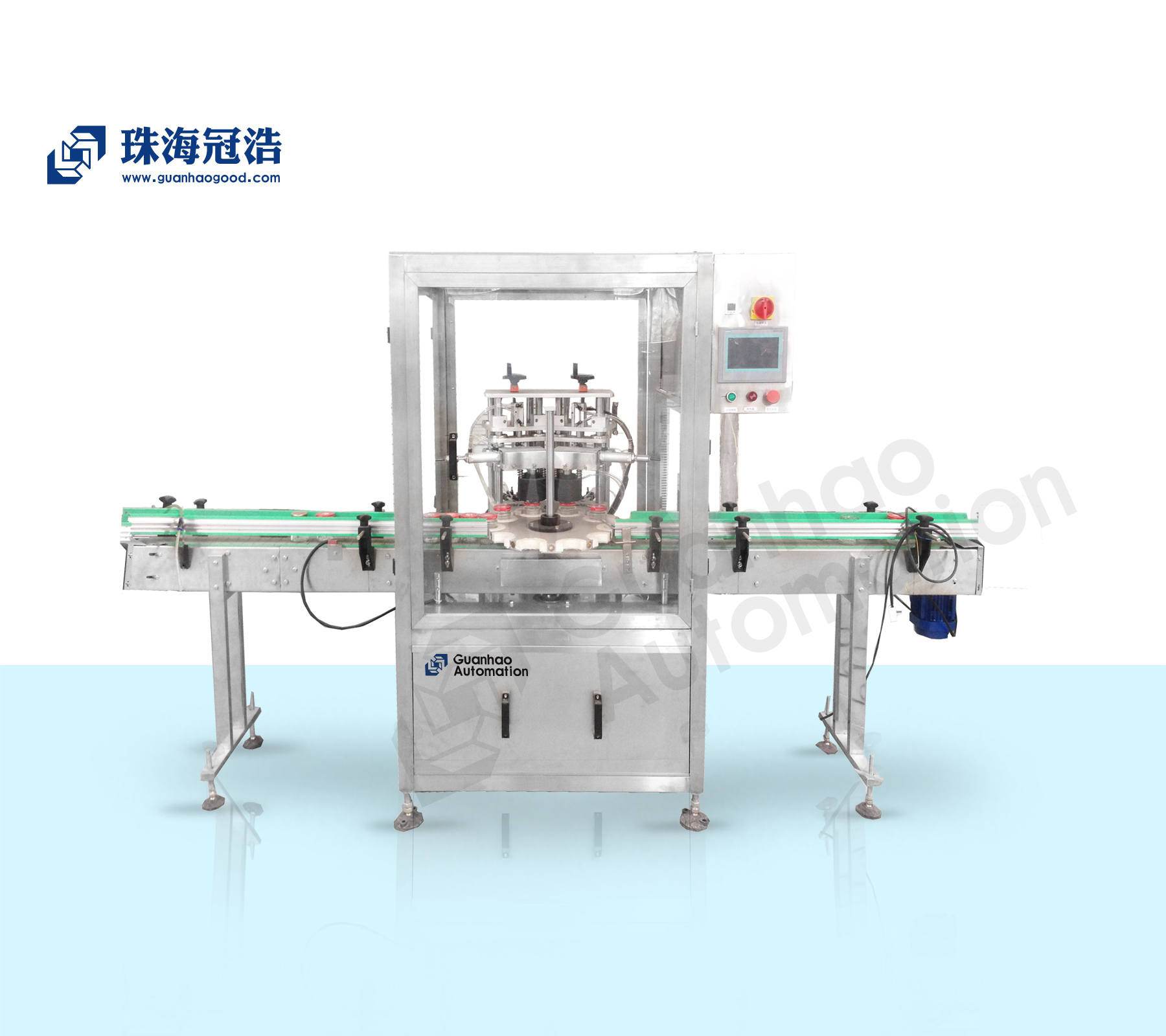 珠海冠浩機(jī)械全自動雙頭抽真空旋蓋機(jī),是我司引進(jìn)國外原理和技術(shù),結(jié)合自身多年的生產(chǎn)經(jīng)驗研制而成,該機(jī)集自動理蓋、自動上蓋、自動抽真空旋蓋于一體,生產(chǎn)速度快,效率高,運(yùn)行穩(wěn)定可靠。該機(jī)適用性強(qiáng)可選用圓形、方形、各種異形瓶等,更換不同規(guī)格的瓶子、蓋子只需簡單調(diào)整,操作方便,是一款理想的三四旋蓋玻璃瓶自動旋蓋設(shè)備。